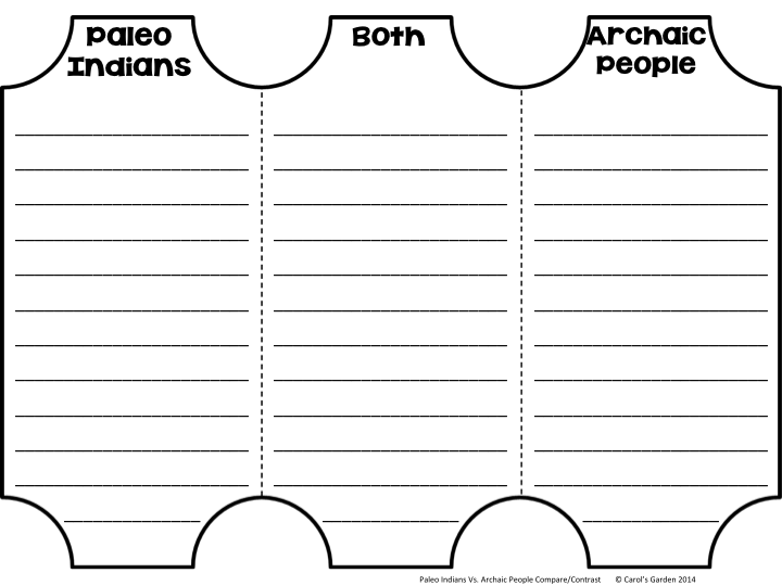 Once the anchor chart and Paleo vs. Archaic People foldable graphic organizer were complete, we could proceed to the compare/contrast summary paragraphs. Of course, your own curriculum probably differs from mine, but here is a sample of what I would be working on with my students.